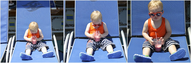 could play in, so we set sammy boy down in there one day, and he loved it! grandma cindy, sherree and i, as well as lance and finn, loved lounging by the pool, enjoying the sun, warm temps and live music. finn loved these strawberry smoothies - i'm pretty sure he two a day!